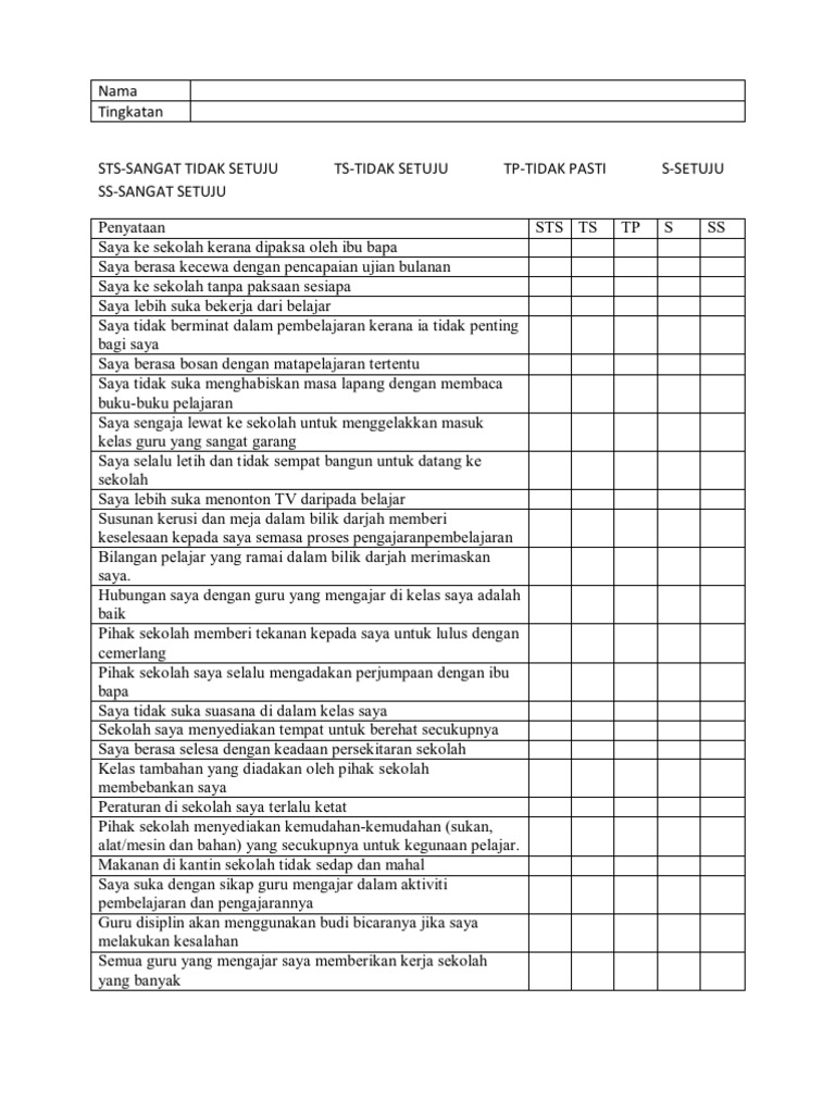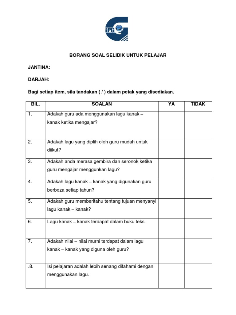 Borang Soal Selidik Untuk Pelajar Pdf